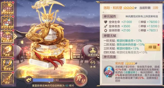 和氏璧的debuff效果是它最大的亮点。战斗中能给敌方全体挂上无法清除的负面状态,比如降低回怒概率、分摊伤害等,这些效果在PVP或高难副本中都是翻盘神器。所以咱们平时可以多关注游戏内的玩法预告,提前准备好资源,遇到和氏璧相关活动就全力冲刺。