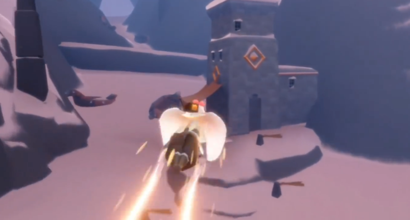 到达终点后,不要直接进入动画区域,而是转向右侧或左上方的窗口。若光翼数量充足(建议7个以上),可直接飞跃窗口;若能量不足,可借助云层或墙壁补充能量。飞出窗口后,需贴墙飞行以避免被风墙吹离路线。视野左侧会出现飞鸟城的轮廓,朝着该方向持续飞行即可抵达。