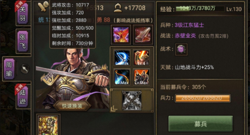 选择合适的武将是克制夏侯惇的基础。夏侯惇的特点是防御高,战法伤害强,因此需要优先选择能够削弱其战法效果或快速突破其防御的武将。周瑜的觉醒战法可以有效压制夏侯惇的技能释放,而关羽的高爆发伤害可以迅速削减他的兵力。貂蝉的战法能够干扰敌方阵容,为队友创造输出机会。在副将的选择上,搭配地形增益型武将可以进一步提升整体战斗力。