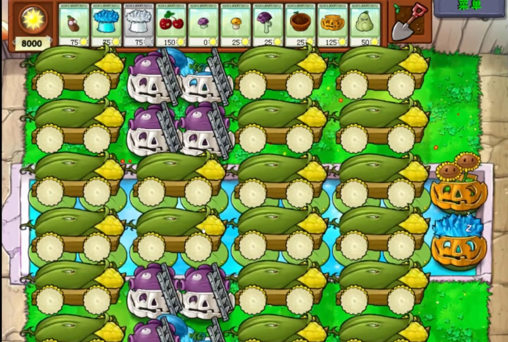 在布阵时,建议前排放置坚果墙或高坚果,用于阻挡僵尸进攻,为后排攻击植物争取时间。中后排可以布置玉米加农炮、冰西瓜或双重射手等输出型植物,确保火力覆盖全屏。如果遇到钢琴僵尸或机器牛这类高威胁目标,可以灵活调整双重射手的位置,或者使用能量豆增强关键植物的爆发能力。能量豆不要随便用,最好留给关键时刻,比如僵尸大规模进攻时用来清场。