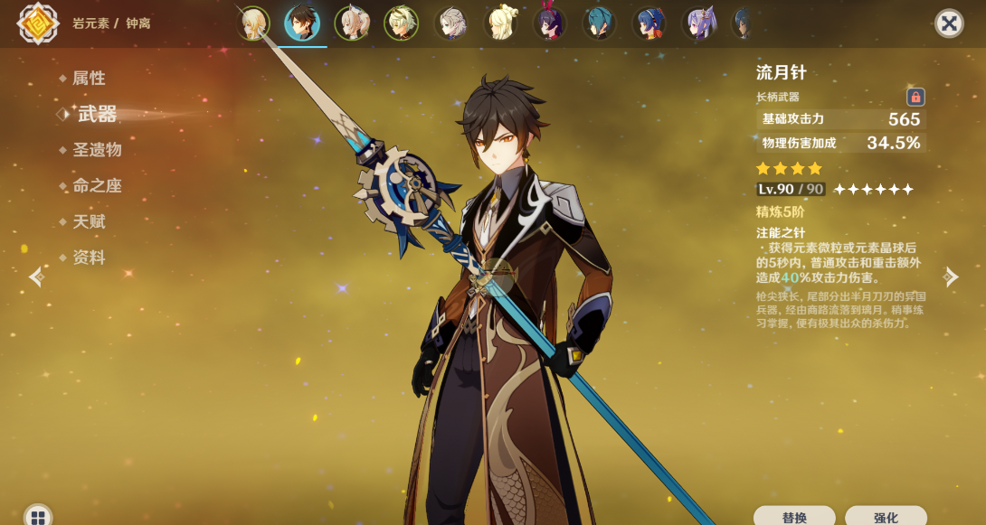 物理流香菱的武器推荐选择流月针,其副属性提供物理伤害加成,且锻造获取难度较低。圣遗物主词条优先选择攻击力、暴击率、暴击伤害,时之沙选择攻击百分比,空之杯选择物理伤害加成,理之冠根据暴击率平衡选择暴击伤害或暴击率。角斗士套装与流月针的组合能最大化香菱的普通攻击与重击输出效率,尤其在面对单体精英敌人时表现突出。