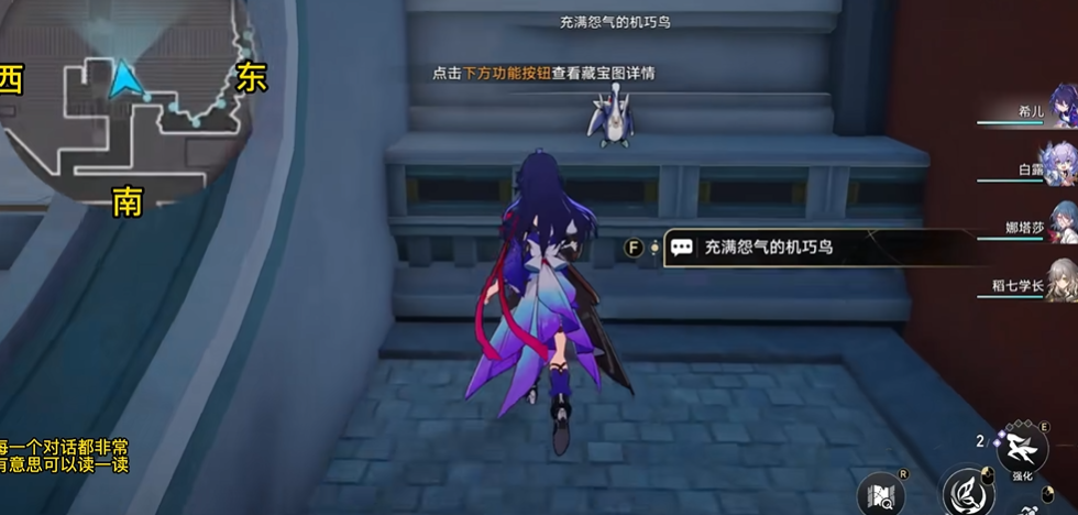 接下来要找剩下的六只机巧鸟,顺序无所谓。在星槎海中枢右侧角落能遇到充满怨气的机巧鸟,它会玩捉迷藏,跟着提示找到它躲藏的箱子后面,对话后解锁嫉妒成就。同一区域的商店门口还有一只不满的机巧鸟,对话时选只说假话的鸟就能拿到暴食成就。长乐天桥边有只代号大壮的机巧鸟,回答它的问题选5镝能解锁傲慢。