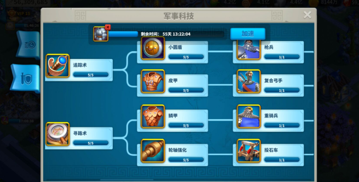 军事发展是强大的核心,但别急着盲目爆兵。先研究军事科技,尤其是兵种攻击和防御的加成,这样同样的兵力能发挥更大作用。训练士兵时注意平衡各兵种数量,步兵、骑兵、弓兵和攻城车都要有,避免被克制。统帅的培养是关键,优先把主力统帅的等级和技能升满,尤其是技能顺序要卡好,比如第一个技能升满再升星。紫色统帅如孙武、贝利萨留性价比很高,适合咱们重点培养。