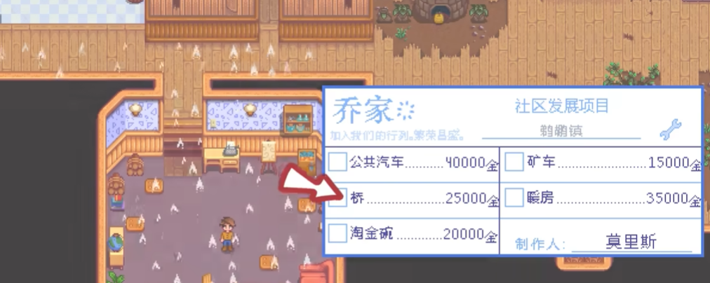 第二种方法是加入Joja超市的会员计划。咱们先去Joja超市花5000金币成为会员,第二天再和经理莫里斯对话,解锁社区发展项目,其中就包括巴士修复,需要额外支付40000金币。这种方式虽然简单直接,但会减少小镇的好感度,适合不想做社区中心任务的玩家。