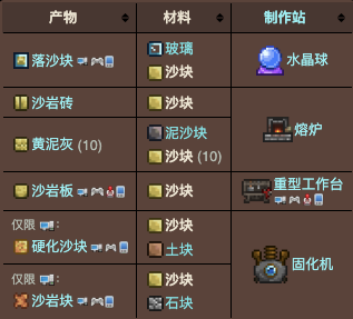 与普通沙块不同,它能有效阻止腐化之地、猩红之地和神圣之地的蔓延,这个特性在困难模式中尤为重要。当首次击败血肉墙后,处于腐化、猩红或神圣生物群落中的泥沙块会被分别转换为黑檀沙、猩红沙或珍珠沙,但之后将不再受这些生态环境影响。这种转化特性使得泥沙块成为控制生态扩散的重要材料。