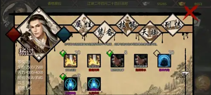 星宿的化功大法专克BOSS,化掉对方内力后随便输出。想搞点特别的可以试试隐藏门派,比如开局不加入任何门派,做完新手村任务后触发幽居天赋或天罗地网掌。多周目别忘了存箱子里的秘籍,血海魔功、龙象般若功和化功大法层层叠加,配上黑天死炎这类特效天赋,后期一刀两段不是梦。时间管理也很关键,每年NPC会变强,建议前两年专注练功,第三年再推主线。