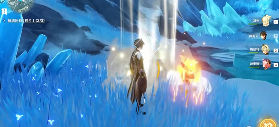 整个解谜流程需注意环境交互与战斗策略的结合,仙灵位置与深赤之石分布具有空间对称性,建议围绕冰碎片进行环形探索。部分视觉死角区域可能存在额外宝箱,解谜期间可同步完成收集。该机制延续了雪山地区特有的环境解谜特色,需综合运用观察力与元素反应知识。