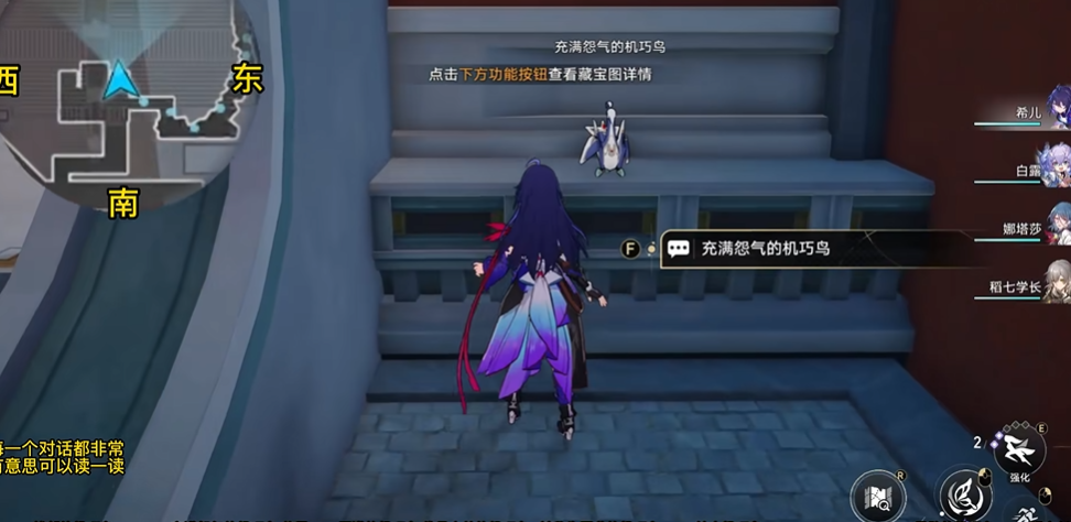 回星港的勇敢的机巧鸟要求进行战斗挑战,击败后即可完成收集。长乐天区域的机巧鸟作为最后一只,其对话选项涉及罗浮四大恶人的相关设定。全部收集完毕后返回梓桥处交付任务,次日还可通过后续对话获取额外奖励。