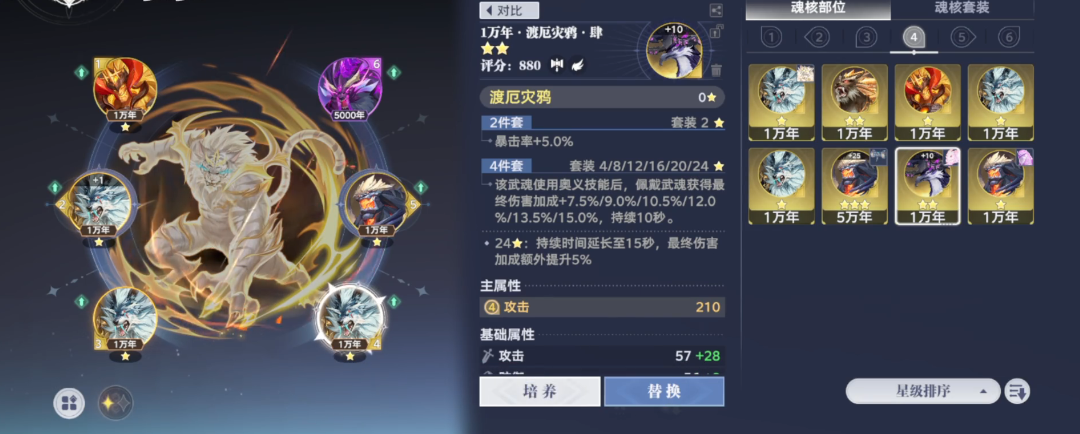 狂猿擎天套提供的攻击加成可与天赋形成互补,可略微降低攻击点数转而提升暴击伤害。若装备偏向生存向的魂骨,则需通过天赋补足输出短板。实战中戴沐白的技能循环以群体破甲起手,接续普攻触发嘲讽,这种战斗节奏决定了爆伤属性的边际收益会随着战斗时间延长而递增。天赋加点的最终调整需结合具体战斗场景。在短时间爆发的副本中,攻击与暴击的收益更为直观;而持久战或PVP场合则需重视爆伤的稳定性。不同年份魂环对技能效果的改变也会影响天赋价值,例如万年魂环强化后的立即普攻机制,能更高效地利用暴击属性。