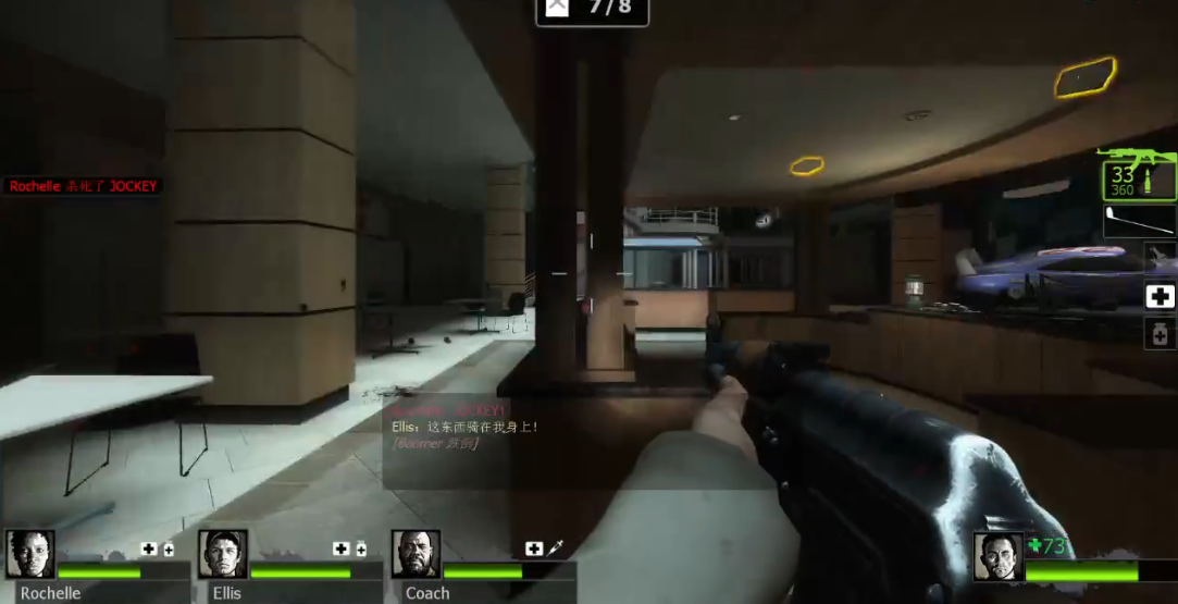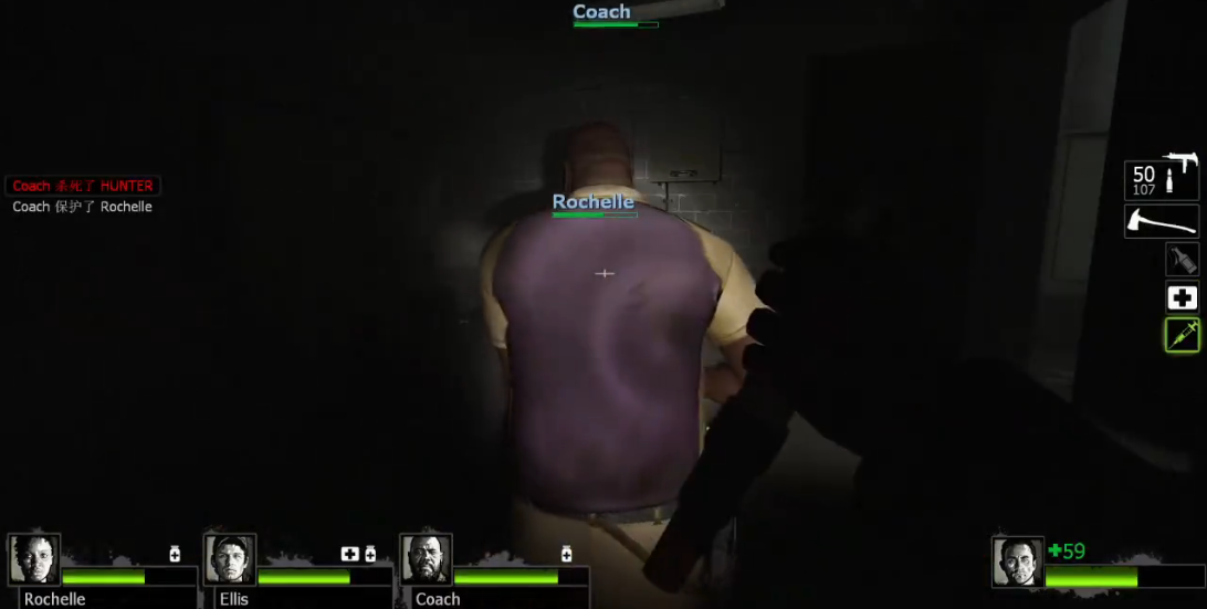 游戏开始后,你会发现自己和队友们在一个废弃酒店的楼层里醒来,周围警铃大作。这时候别急着冲出去,先看看身边有什么武器能用。近战武器里消防斧是个不错的选择,攻击范围大威力足,对付初期的小僵尸很顺手。初始区域的门打开后是一条直走廊,左边有房间右边是窗户,建议先清理走廊僵尸再分头搜刮房间物资。