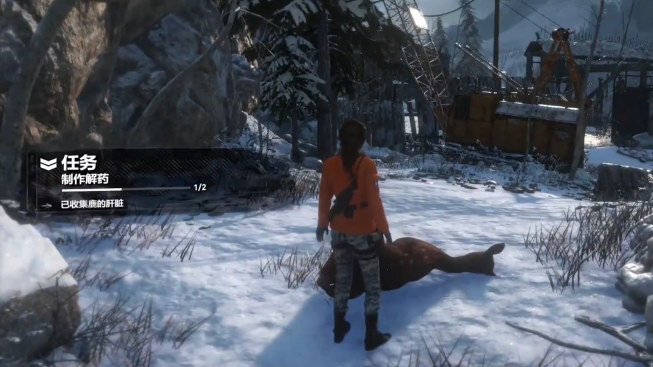 制作解药环节需要收集5个粉色种子荚和2个鹿肝脏。种子荚分布于洞窟内,鹿肝脏需在地热山谷猎杀鹿获取。完成收集后,前往铜矿工厂空地东南方的列车车厢,通过黄色梯子登上屋顶,在建筑物内的箱子中找到硫化二苯胺。解毒剂制作完成后会出现圣三一士兵,建议优先处理前方和下方敌人。
