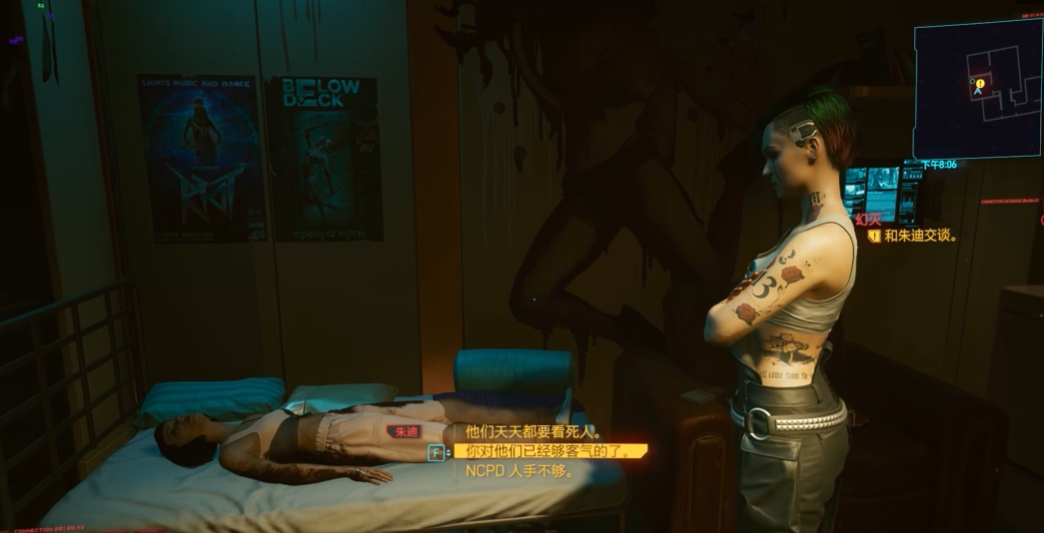 在任务幻灭阶段,发现艾芙琳自杀后必须选择安抚朱迪的选项,包括将尸体安置在床上、天台递烟等互动。随后的前任任务中,接到朱迪电话后需立即回应并接受帮助请求,延迟回复可能降低好感度。让我们在云顶撒点野任务中,当朱迪提出支付报酬时必须拒绝,选择提都别提选项,这能触发留宿事件并获得早餐互动。这些细节选择会累积朱迪对V的信任程度。