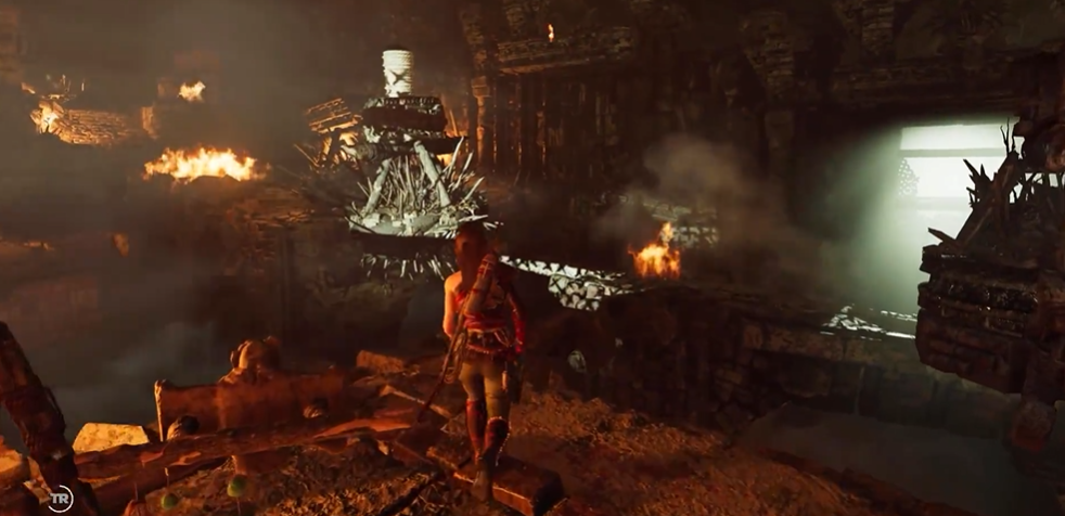 进入古墓后首先需面对图腾机关的挑战。中心区域有一个带火盆的旋转图腾手臂,触碰即会失败。玩家需利用时间差跑到左侧通道尽头,拉动开关使图腾手臂收起。过程中需注意地面隐蔽的陷阱,建议开启生存本能高亮提示。完成左侧操作后,需逆时针跑向右侧通道,重复拉动开关动作。最终需在两端各拉动一次开关才能完全停止图腾运转。