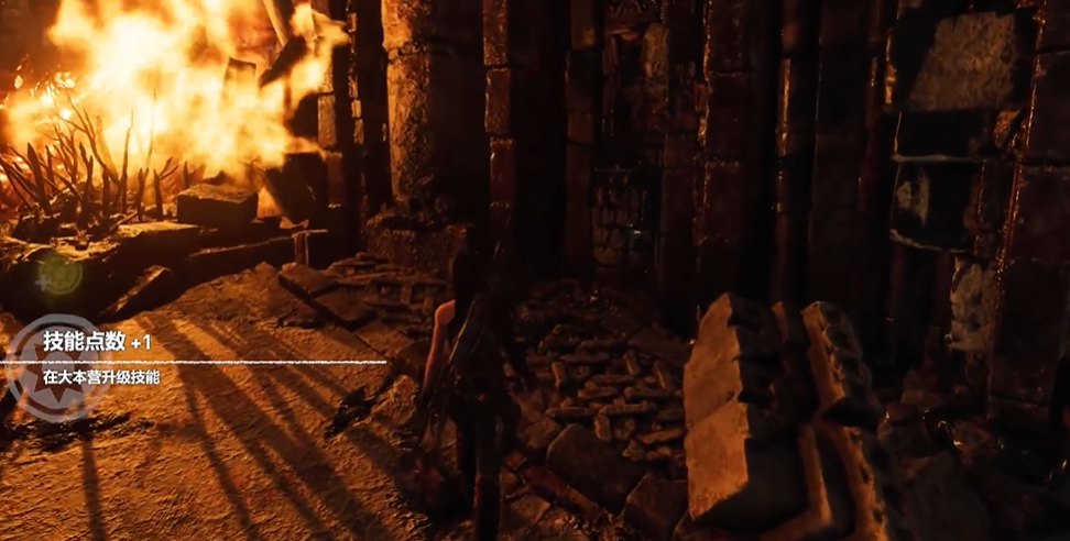 核心解谜环节在于利用第三个摆锤清除中央通道障碍。从右侧岩壁攀爬至底部火堆平台,用弓箭瞄准第二个带刺摆锤,在其摆动至最高点时用绳索箭矢将其与第三个摆锤连接。返回激活第二个风向开关,风力将带动两个摆锤联动,最终第三个摆锤会撞击并摧毁通道中的废墟障碍。此过程要求玩家掌握绳索箭矢的发射时机与角度。