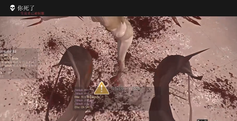 关闭光源并保持远距离缓慢移动可通过多数Witch警戒区域,非必经之路建议绕行。若意外惊动Witch,集中火力反击优于逃跑,其移动速度远超幸存者。团队协作时需明确分工,避免同时使用燃烧瓶等可能引发混乱的道具。近战武器需四次有效命中才能击杀Witch,该方式风险系数较高仅限应急使用。