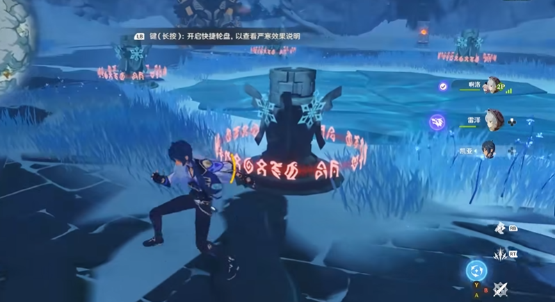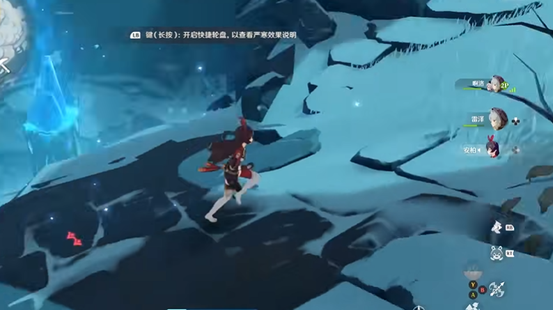 第二块碎片在眠龙谷传送点下方,需要先启动机关激活五个冰柱,按正确顺序点亮。击败三个遗迹守卫后,用火元素融化冰雪进入洞穴,内部同样有四块深赤之石用于解封碎片。这个区域敌人较多,建议提前做好战斗准备。