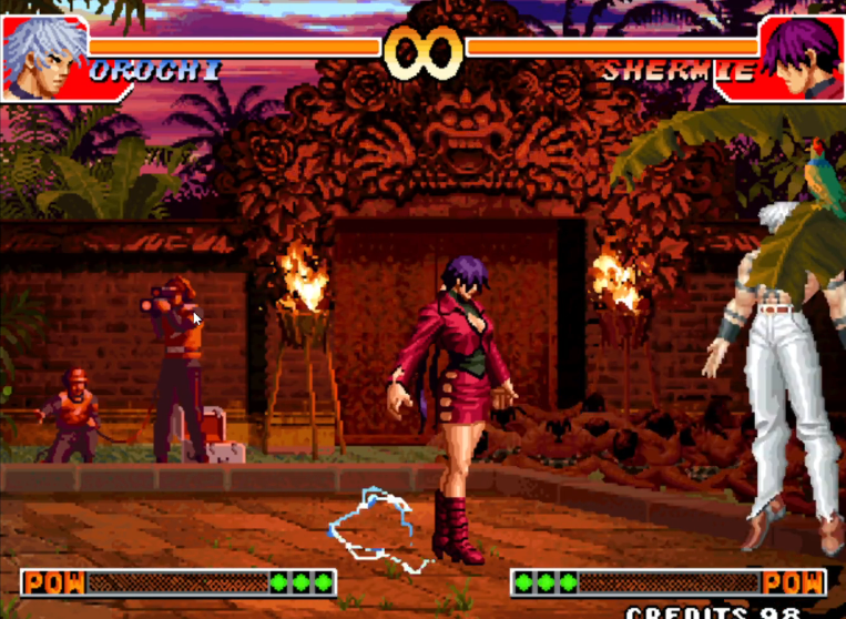大蛇作为拳皇97中的隐藏BOSS角色,拥有极强的技能组合与独特的战斗机制。其核心技能包括黑粒子、反弹盾、空间转移、能量撞击以及终极必杀阳光普照。黑粒子通过↓→+轻拳释放,属于不可抵消的多段打击技能,适合中距离牵制对手。反弹盾的指令为←↓→+重脚,可吸收并反弹飞行道具,同时快速积攒能量。空间转移需输入轻拳+轻脚,能瞬间移动至对手前后方,用于躲避关键攻击或调整站位。