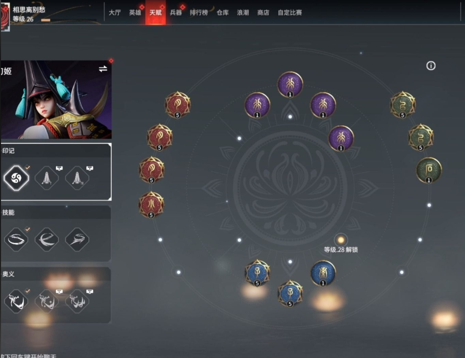 英雄专属印记是用于展示玩家游戏历程与成就的核心系统,其功能主要体现在个性化展示与资源获取两方面。印记通过分类管理机制将玩家的成就、活动参与、等级成长等数据可视化呈现,同时与游戏内奖励系统深度绑定,成为角色培养的重要辅助工具。该系统自天赋解锁阶段(玩家等级6级)起逐步开放槽位,每提升2级可解锁新的印记装配位置。