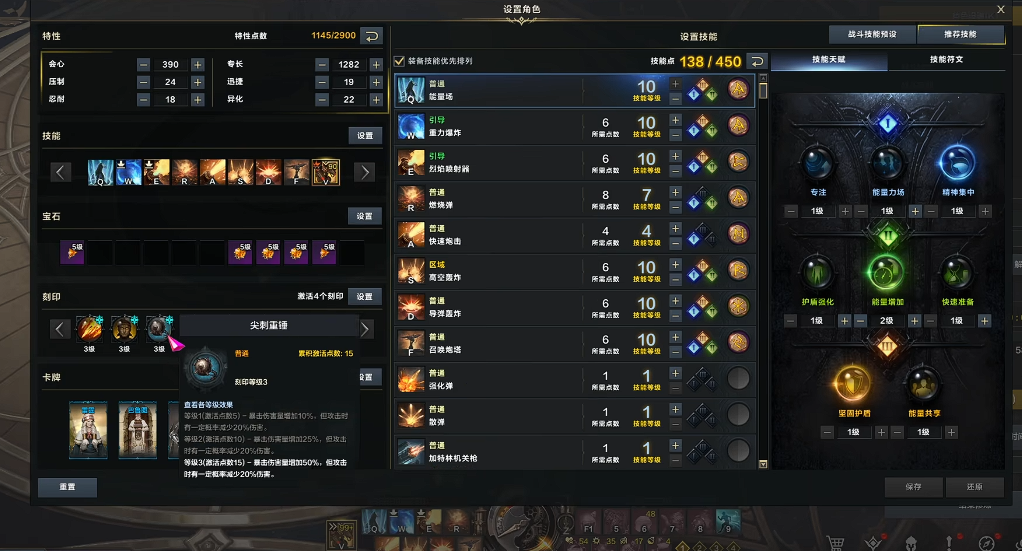 天赋加点的重点方向为攻击力、暴击率及暴击伤害提升,这些属性可显著增强枪炮大师的压制力。战斗中需注意技能释放顺序:通常以聚焦射击起手远程消耗,接爆裂射击清理近身目标,再通过重力炸弹实现控场与补伤。面对高难度副本时,需合理利用散射射击的强化范围效果进行战场分割,同时保留觉醒技能应对关键阶段。铭刻方面推荐选择增加攻击力或暴击加成的词条,与天赋形成联动。