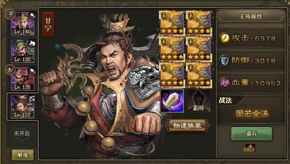 阵容搭配上推荐徐晃、夏侯惇、甘宁的组合,夏侯惇水域战斗力加成16%,战法打四排的优势明显。如果遇到战法被格挡的情况,可以调整站位让甘宁先手,利用高勇属性抵消敌方技能。副本里的于禁会召唤小兵,记得留战法清场,别被包围。兵器中的血滴子和八卦袋这时要优先强化,禁军令则侧重提升兵力上限。