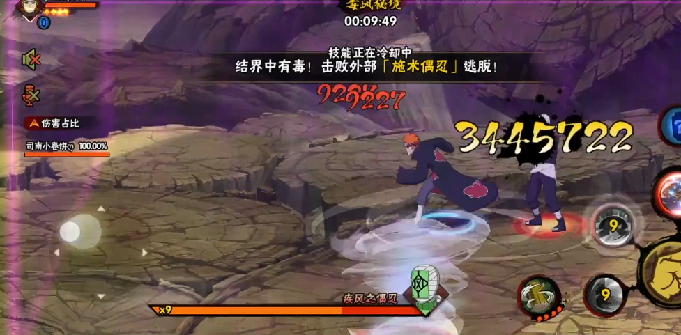 毒风秘境的核心机制就是场地里那个会让你不停掉血的毒风结界,以及在里面乱窜的伤害很高的旋风。所以咱们的思路很简单,第一要务就是尽快打破结界,摆脱持续掉血的环境。开局后,地图上会出现三个毒风忍偶,它们会不停放出风阵。这里一定要记住一个关键点:优先集火攻击右边的那个忍偶。因为只有打掉它,那个困住你的毒风结界才会消失,你才能安全地进行后续输出。