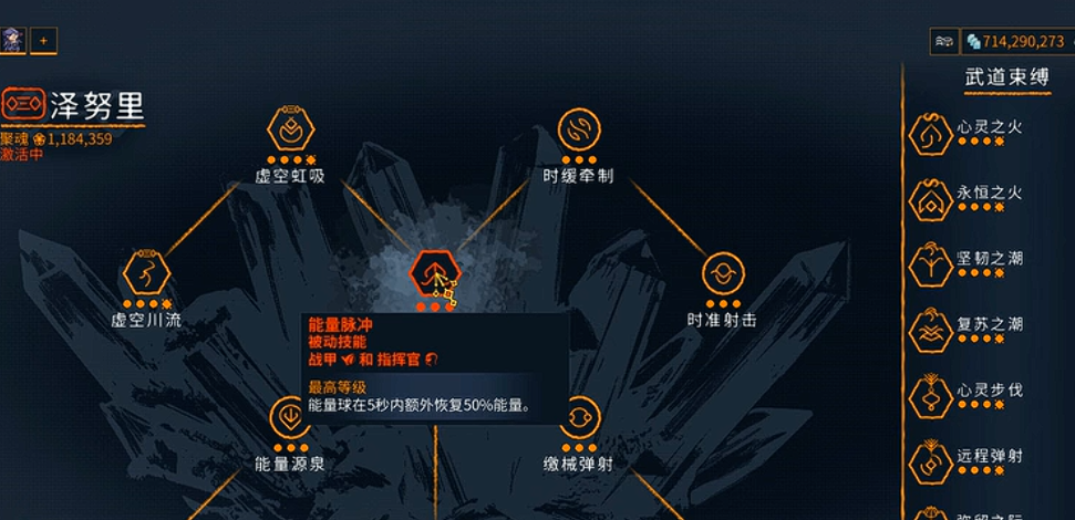 对于技能树的加点顺序,建议新手玩家优先投资于能量源泉和内在之力这些基础能力,以解决初期的能量续航问题。之后再根据你的游戏风格逐步解锁其他增强效果,比如虚空川流被动技能可以永久提高指挥官90%的能量上限,从而让你能更自由地使用其他技能。