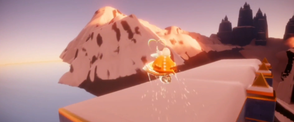 去婚礼殿堂最经典也相对稳妥的方法,是需要一个小伙伴帮忙的。你需要先抵达霞谷的飞行赛道起点。无论你选择飞行赛道还是滑行赛道,它们的起点都是同一座神庙。到达飞行赛道的起点后,和你朋友使用背背动作,就是两个人互相背起来那个姿势,然后一起飞到空中。飞起来之后,你要留意身后那片被白雪覆盖的巨大山崖,朝着那个方向飞,并且沿着山崖一直往前。飞一会儿你就能看到那片隐藏的建筑群了。山崖前面会有两座高塔形成的通道,从那里飞进去然后向右拐,你能看到另一个通道。因为那些窗户都没有空气墙阻挡,所以你可以直接飞进建筑内部。整个过程完全不用担心飞行能量不够,因为下方就是厚厚的云层,可以随时落下去补充能量,非常方便。