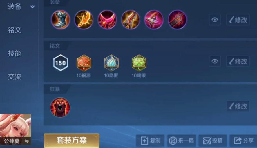 公孙离的铭文搭配现在主流走暴击攻速流,红色选五个红月和五个祸源,这样开局就有11%攻速和11.5%暴击率,对线点人特别疼。绿色十个鹰眼不能少,物理穿透前期打肉也有效果。蓝色建议带五个夺萃加五个狩猎,夺萃提供8%吸血赖线能力强,狩猎的移速和攻速加成让走位更灵活,这套组合总共提供26%攻速和64点穿透,前期对拼完全不虚。