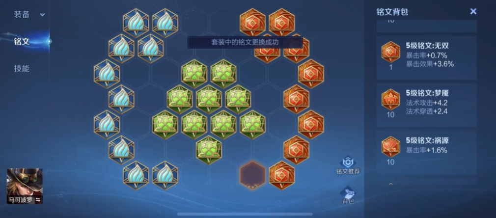 常用的组合是10个红月、10个狩猎和10个鹰眼,这个搭配能提供大量攻速、移速和物理穿透,确保马可波罗在线上能有效压制对手,快速积累经济优势。有些玩家也会加入夺萃来增强吸血能力,提升续航,但核心还是围绕攻速来最大化技能效果。