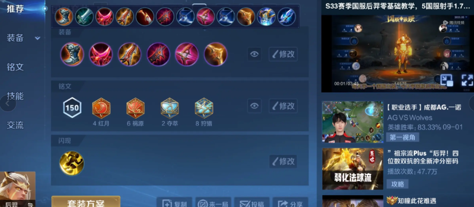 铭文搭配对于肉后羿来说同样重要,它能让你在半肉状态下依然保持可观的输出效率。建议使用10个夺萃铭文来提供吸血效果,这样你在前期对线时就能更持久,不用频繁回城。搭配10个红月铭文来强化攻速和暴击几率,让你的攻击更频繁和致命。10个鹰眼铭文能提供物理穿透,弥补因为出肉装而对坦克英雄伤害不足的问题。红月的攻速加成还能更快触发末世的被动效果,从而在团战中制造更多伤害。这样的铭文组合让后羿即便在防御装备较多的情况下,也能通过高速攻击和吸血来维持战斗力,避免因为防御装而输出乏力。