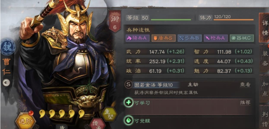 另一个值得考虑的替代武将是曹仁,他本身是个不错的肉盾,自带战法固若金汤能提供洞察状态并嘲讽敌人,保护队友。用曹仁的话,可以充分发挥他吸收伤害和控制的作用,他的魅惑技能还能进一步增强控制效果,有机会限制住对方主将的行动,给咱们的输出创造空间。在战法搭配上,和用郭淮的思路有点像,核心还是要补足队伍的减伤链,比如八门金锁阵就是个优先级很高的传承战法,能有效降低战斗前期的伤害,配合暂避其锋或者御敌屏障这些,可以形成一个比较稳定的防御体系,让夏侯惇、程昱这些武将能在相对安全的环境里打输出。