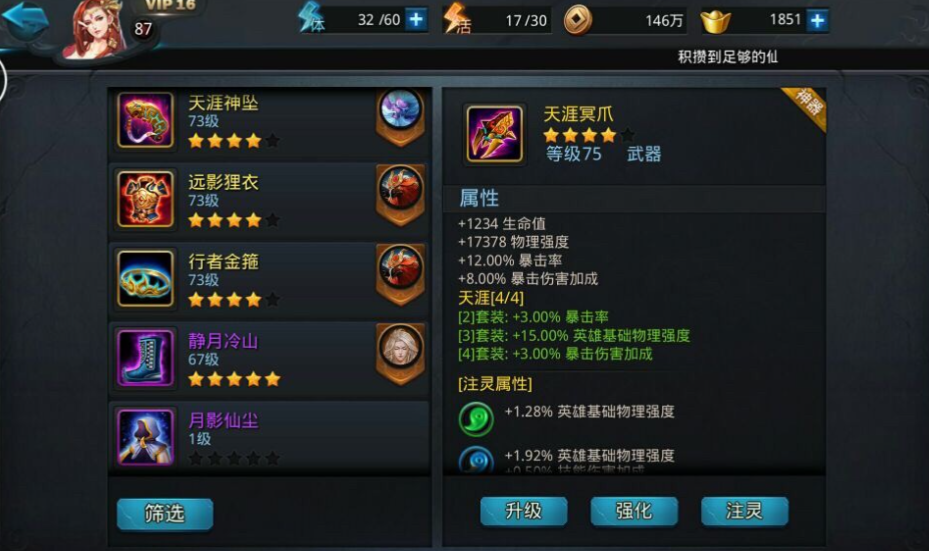 内丹系统的加点策略需要结合物攻英雄的技能特点。红色内丹的核心属性推荐敏捷、暴击率和暴击伤害,这能完美契合高频普攻和技能爆发的输出模式。蓝色内丹根据战斗情况选择智力或体质,前者提升技能基础伤害,后者增强战场续航能力。绿色内丹进一步强化攻速和生命值,而紫色内丹纯粹补充物理攻击和少量生存。特别要注意红色内丹中的穿透属性和紫色内丹的物攻加成,它们能有效突破敌方前排防御,在篝火夜话等BOSS战中表现尤为突出。玩家需留意内丹属性之间的联动效果,例如敏捷搭配暴击可以触发更频繁的暴击效果,与特定神器的暴击增益形成叠加效果。