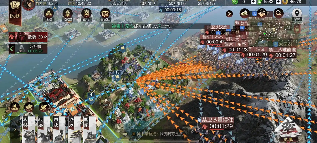 • 率土之滨怎么把部队弄得分城去 分城是玩家扩展地盘和资源的重要据点,但很多新手会困惑如何将部队部署到分城。实际上,主城和分城的部队不能直接互相调动,因为它们享受各自城市的建筑加成,所以想用分城