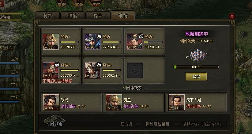 攻打国战绝对是首选。经过游戏多次调整,打国战现在性价比非常高,特别是增加了突进、诱敌这些功能后,战斗耗时减少了,获得的收益却增加了,整体效率是最高的。如果你能一路打到敌国的都城下面,还能享受到额外的经验加成,如果再配合上后期科技的额外加成,国战就成了获取主将经验的最佳渠道。 参与世界地图上的国战,根据击杀敌人的数量也能获得不少经验奖励,这也是一种重要的经验来源。