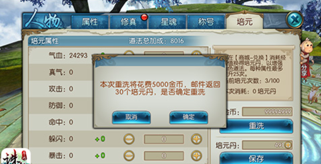 培元系统是提升角色道法的重要途径,需要角色等级达到150级后才能开启,玩家可以通过完成主线任务、帮派炼血堂任务和各类副本来快速积累经验升级,当经验达到每日上限后会出现衰减状态,所以建议优先完成经验多的任务。培元加点需要使用培元丹和金币,每次加点消耗10个培元丹,每个属性最多可以加点25次,但所有属性加起来总共只能分配100点,所以不能把所有属性都加满。加点后可以提升气血、真气、攻击、防御、爆伤加成、爆伤减免和暴击这七种属性,但要根据职业特点合理分配点数。加点后如果不满意,可以用金币重置,重置后培元丹会返还,但金币不会退回。