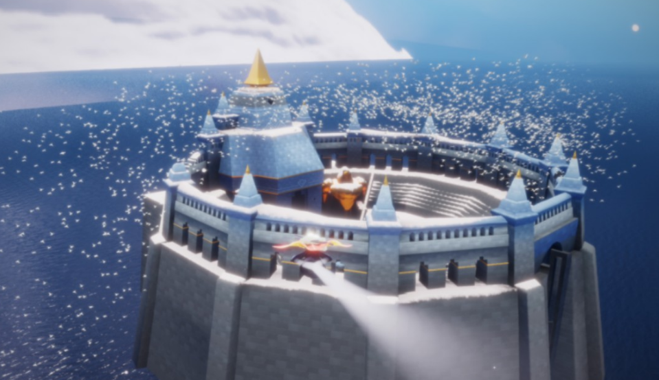 特别是有些小伙伴可能光翼数量还不是特别多,大概在七翼左右,就很关心自己一个人能不能顺利飞过去。放心,七翼是完全可以操作的,虽然能量会有点紧张,但只要掌握好路线和技巧,成功打卡不是梦。千鸟城就在霞谷地图的外围,是一座悬浮在云层里的城堡,风景特别美,有白天和黑夜两种不同的景致可以看。