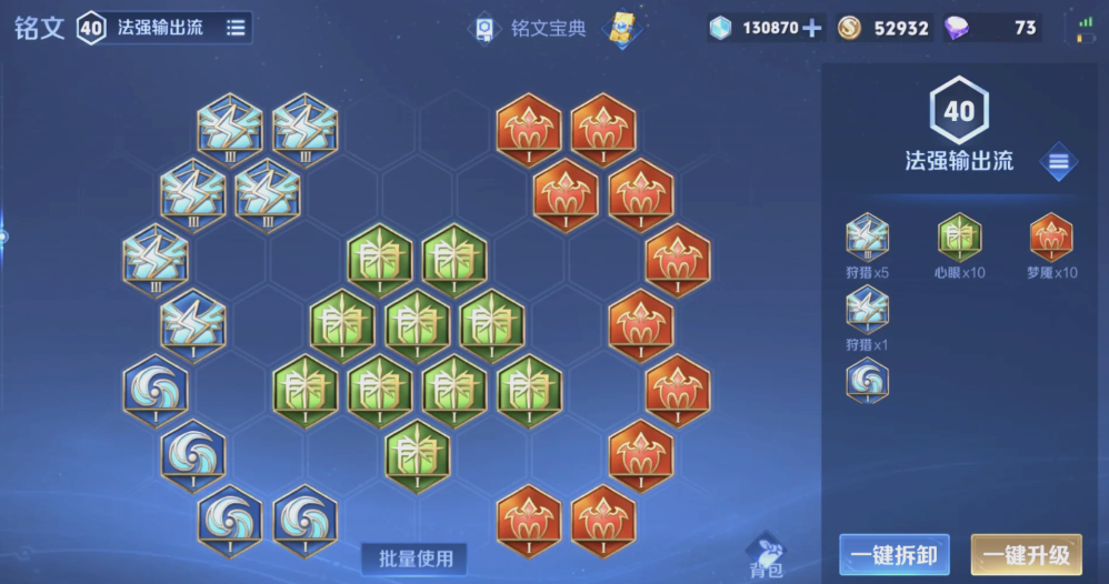 嬴政通常采用以法术穿透和攻击速度为主的组合,以契合其技能与普攻混合输出的特性。一套被广泛采用的铭文是红色梦魇、绿色心眼和蓝色狩猎。梦魇与心眼提供高额的法术攻击与法术穿透,确保技能伤害的基础强度;狩猎提供的攻击速度加成能优化前期普攻手感与清兵效率,其移速加成则大幅提升了嬴政的游走支援能力与战场走位灵活性。这套铭文让嬴政在游戏前期就能具备可观的压制力。