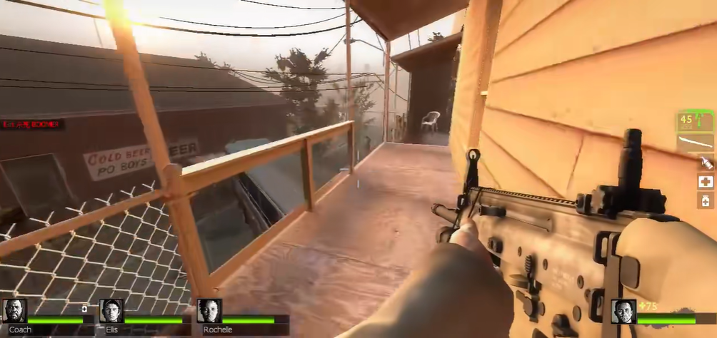 通关的关键在于紧密的团队协作和清晰的路线规划,从安全屋出来后应集体行动,优先清理沿途的零散感染者以节省弹药,在狭窄区域遭遇尸潮时,霰弹枪或冲锋枪能有效清场,近战武器则用于应对近身敌人和节省弹药,投掷物如燃烧瓶可以封锁走道,创造防守优势。