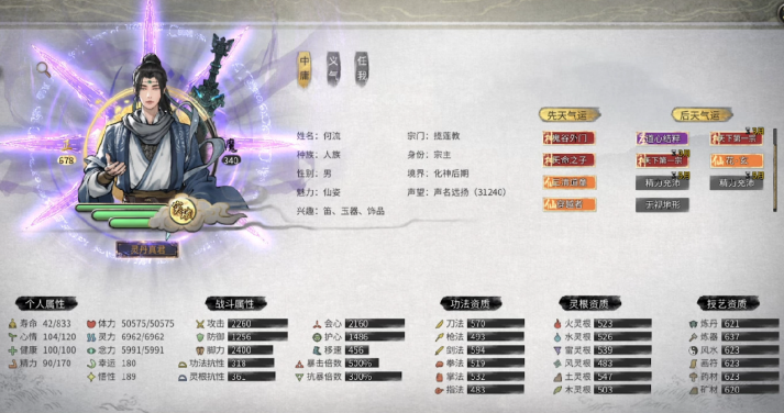 角色创建阶段的属性分配与先天气运搭配是塑造人物潜力的关键步骤,其中悟性与攻击力是需要优先保障的核心属性。悟性高低直接决定了后续修炼各类功法秘籍的速度,且开局后难以通过常规手段大幅提升,因此建议尽可能将其堆高;攻击力则是前期顺利完成战斗与任务的基本保障。在先天气运的选择上,鬼谷外门、武圣降临与人族圣人被普遍视为优先选项,它们能为角色提供显著的属性加成;若无法获得,亦可从武法灵童、天命之子等词条中择优选取。