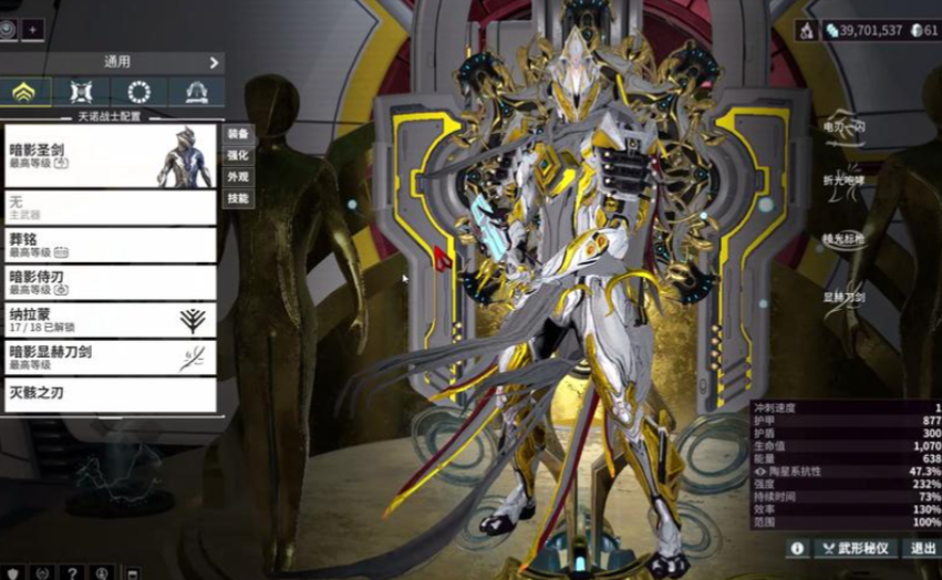 前期选择圣剑(Excalibur)作为初始战甲是最为稳妥和高效的选择。这款战甲以其均衡的属性和直观易用的技能组合著称,能帮助你快速熟悉游戏的基本操作与战斗逻辑。圣剑擅长近战攻击,拥有位移、控制和范围伤害等多种能力,其终极技能显赫刀剑能召唤光剑进行高频率的剑气攻击,清场效率非常出色。这种全面性意味着你在游戏早中期面对绝大多数任务时都不会感到吃力,无需复杂的配置就能有稳定的发挥,是开荒阶段最值得依赖的伙伴。