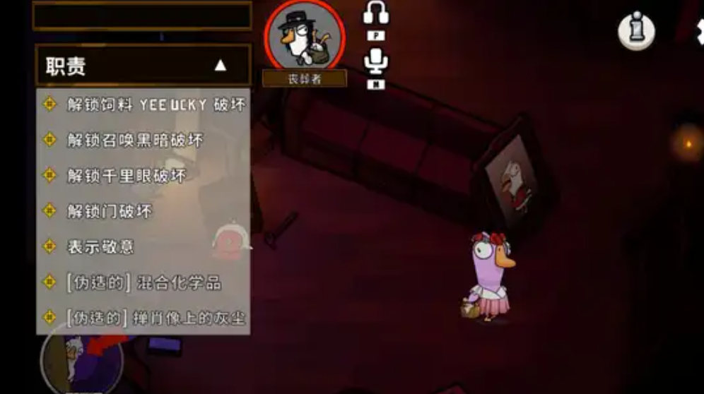 丧葬者,全称承办丧葬者,是游戏中鸭子阵营的一名功能性角色,其胜利条件与鸭子阵营的其他成员一致,即通过击杀足够数量的鹅阵营玩家来获胜。这个角色是特定地图的限定身份,仅会出现在地下室和丛林神殿(或简称丛林)这两张地图中。作为鸭子阵营的一员,丧葬者本身具备刀人能力,但其核心价值在于其独特的善后处理技能,能够为整个鸭子团队创造隐蔽的行动环境。相较于直接进攻型的角色,丧葬者更侧重于辅助与局势操控,通过隐藏罪证来打乱好人阵营的推理节奏。