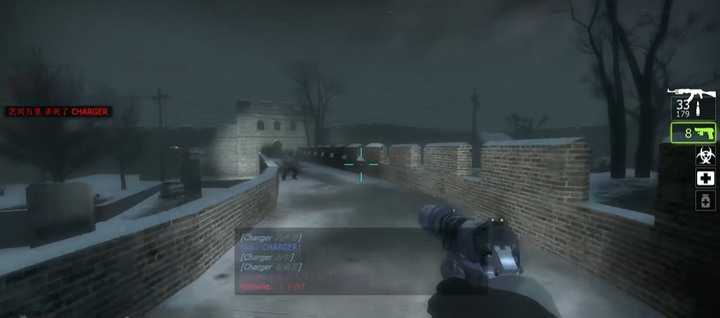 创意工坊地图万里,通关的核心目标是收集场景中散落的油桶或烟花,在指定位置使用它们融化船舶周围的冰块,最终乘船逃离。这一关通常起始于长城区域,衔接第一关从飞机跳伞降落后的剧情,你们需要在这段充满中国风建筑的长城上开始新的求生旅程。环境光线可能比较昏暗,增加了探索的紧张感,沿途会遇到汉字标识和中国风建筑,路线虽然不长但需要小心推进。