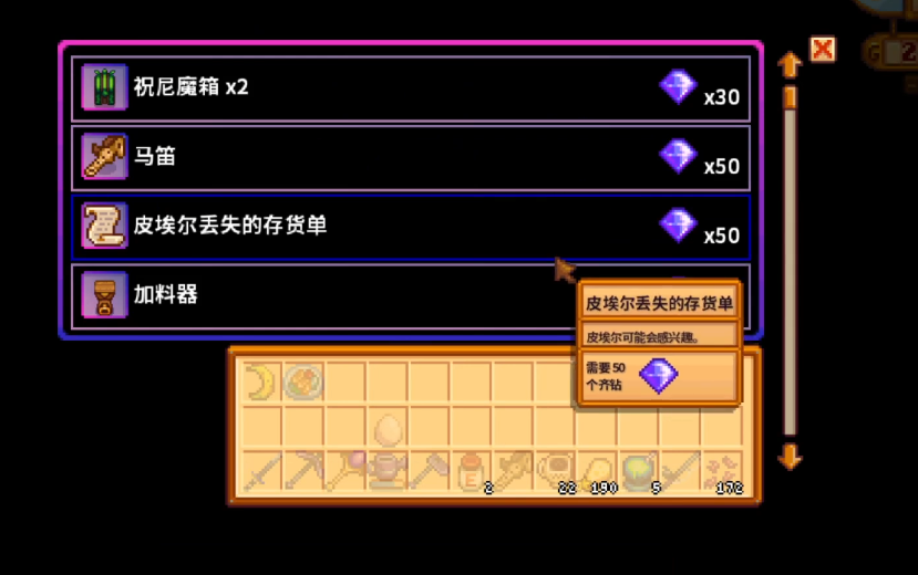 紧随其后的关键兑换物是小镇钥匙和皮埃尔的商品清单。小镇钥匙可以让你无视营业时间限制,在任何时间自由进入镇上的所有建筑,这对于送礼、交易或完成社区活动提供了极大的便利。而皮埃尔的商品清单则能解锁更多物品选择,让你随时购买非当季的种子,对于规划姜岛农场的种植非常有帮助。