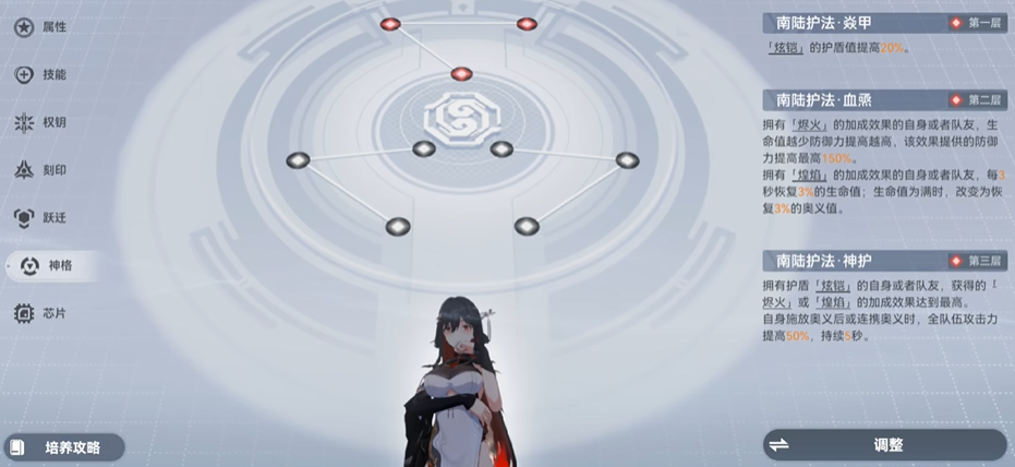 神格路线的选择决定了陵光的定位倾向。朱羽瑞辰是专为火属性队伍服务的辅助路线,能最大化火队的输出。炽离神君路线则偏向于手操输出,让陵光自身也能打出可观的伤害,但这通常以牺牲部分团队加成为代价。南陆护法是一条通用的辅助路线,适应性更广。玩家需要根据自己是需要极致的团队辅助,还是希望陵光有一定补伤害能力来做出选择。