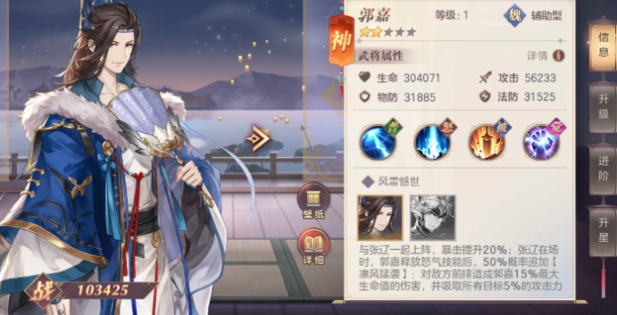 阵容站位需要考虑敌方攻击模式和张辽的隐匿机制。通常将张辽置于中排,前排安排曹仁等坦克武将吸收伤害,后排配置郭嘉等辅助武将提供增益。需注意避免张辽与主要输出武将同排,防止被范围技能同时波及。在实战中,孙坚的退条技能可打乱敌方节奏,为张辽创造先手优势。