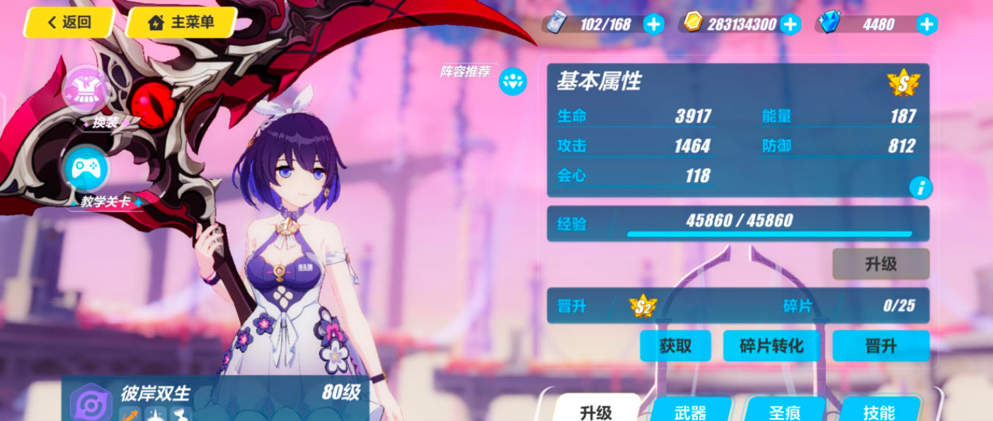 彼岸双生形态下的希儿具备黑白双形态切换机制,白形态普攻积攒白蓄力条并施加白印记,蓄力攻击清除印记造成额外伤害;大招切换为黑形态后印记转为黑色,蓄力机制相同但攻击模式变化。形态转换时画面背景会产生短暂变化,为输出最佳时机。需注意实战中仅虚弱效果可触发S级希儿的QTE,脆弱状态无法激活该机制。