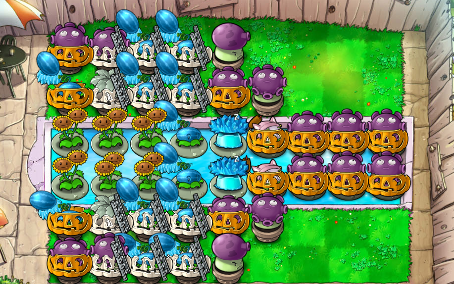 水路优先部署忧郁菇或猫草,有效清理海豚僵尸与潜水僵尸;陆路则补充冰西瓜或机枪射手提升群体伤害。需开始布置南瓜套保护关键植物,尤其是忧郁菇和冰西瓜。地刺王可放置在陆路前排,用于延缓巨人僵尸和冰车推进。若出现气球僵尸,及时补充三叶草或猫尾草。此阶段重点在于平衡阳光消耗与植物升级,避免因过度投资导致后期经济崩溃。