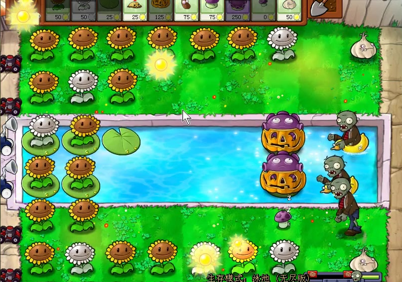 无尽模式的开局关键在于快速建立阳光经济与基础防御体系。优先种植双胞向日葵或普通向日葵,确保阳光产量足够支撑后续植物部署。开局前几波僵尸较弱,可利用土豆雷、窝瓜等一次性植物拖延时间,同时在水路提前放置睡莲为后续水路防御做准备。阳光积累到约200-300时,立即在每行部署豌豆射手或寒冰射手形成基础火力线,避免被僵尸突破。注意保留至少一个应急植物如樱桃炸弹,应对突发情况。