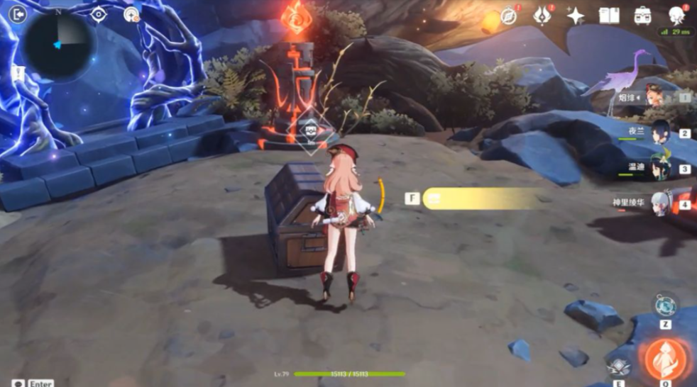 首先在山洞内左侧点亮第一个火炬并获取普通宝箱,随后在火元素方碑旁点亮第二个火炬,第三个火炬位于方碑上方的楼梯边缘,第四个则藏在门扉后方。完成全部火炬点燃后返回解封火方碑,水位二次下降会露出底部舞台,海螺将出现在舞台区域的显眼位置。收集海螺后可继续解密获取屏障内的三个珍贵宝箱,需通过音律树琴演奏解锁。