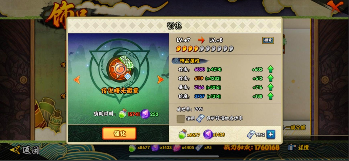 暴击属性在10万以下时优先堆叠暴击率,超过阈值后转为强化攻击属性以提升实际输出。防御型忍者可选择生命值和抗暴属性饰品,而输出型角色需优先保证暴击与攻击的平衡。同一套饰品中避免重复属性,例如已拥有两件暴击加成的饰品后,第三件应选择攻击或防御属性以优化收益。